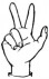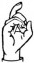 На ћирилици написано ВУКАН РЕБРАЧА састоји се из 12 слова [?]. Исписано ћириличном једноручном азбуком за глувонеме: